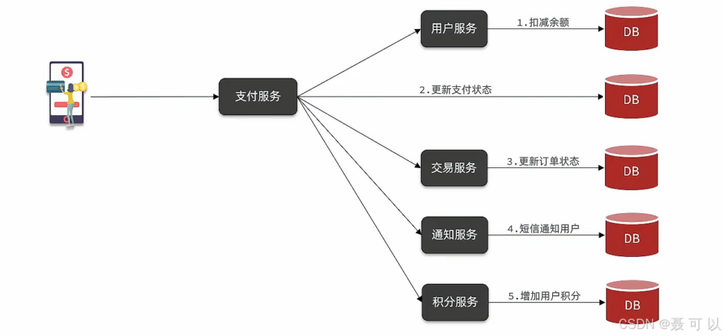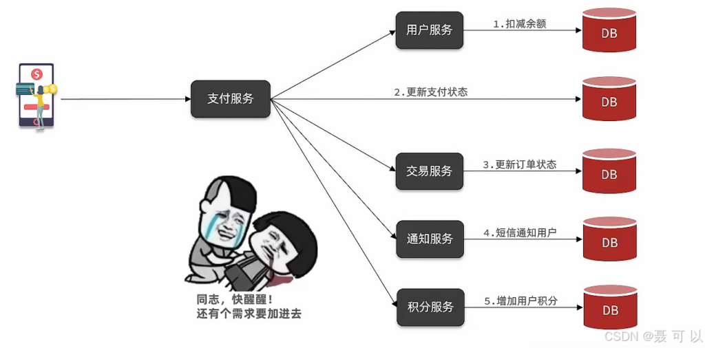 第一个问题就是业务耦合的问题,对于支付服务来说,最重要的一件事就是扣减用户的余额,然后更新支付状态